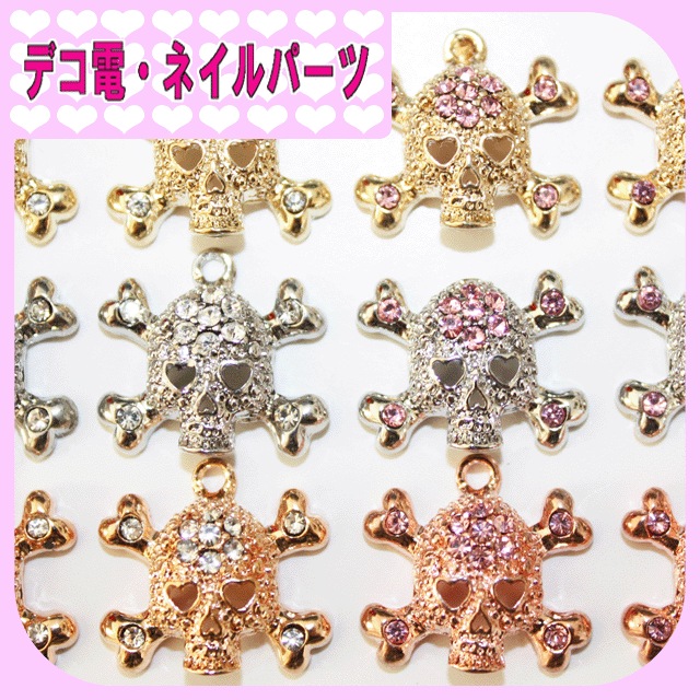 ネイルアートにも最適☆ストーンが埋め込まれたキラキラゴージャスなメタルのスカルパーツ(S)です。