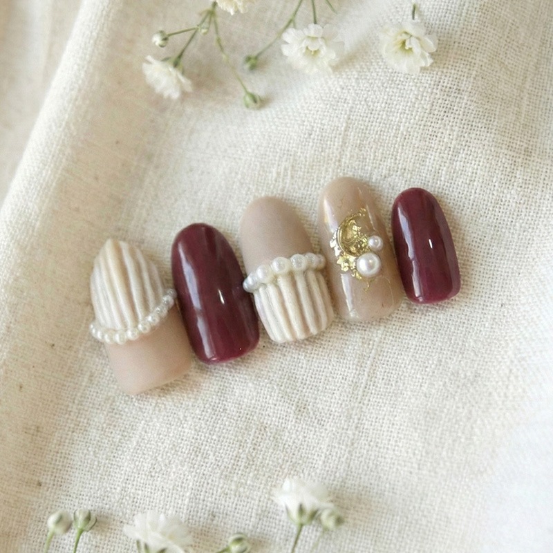 深みのあるボルドーと、温かみのあるベージュを組み合わせた